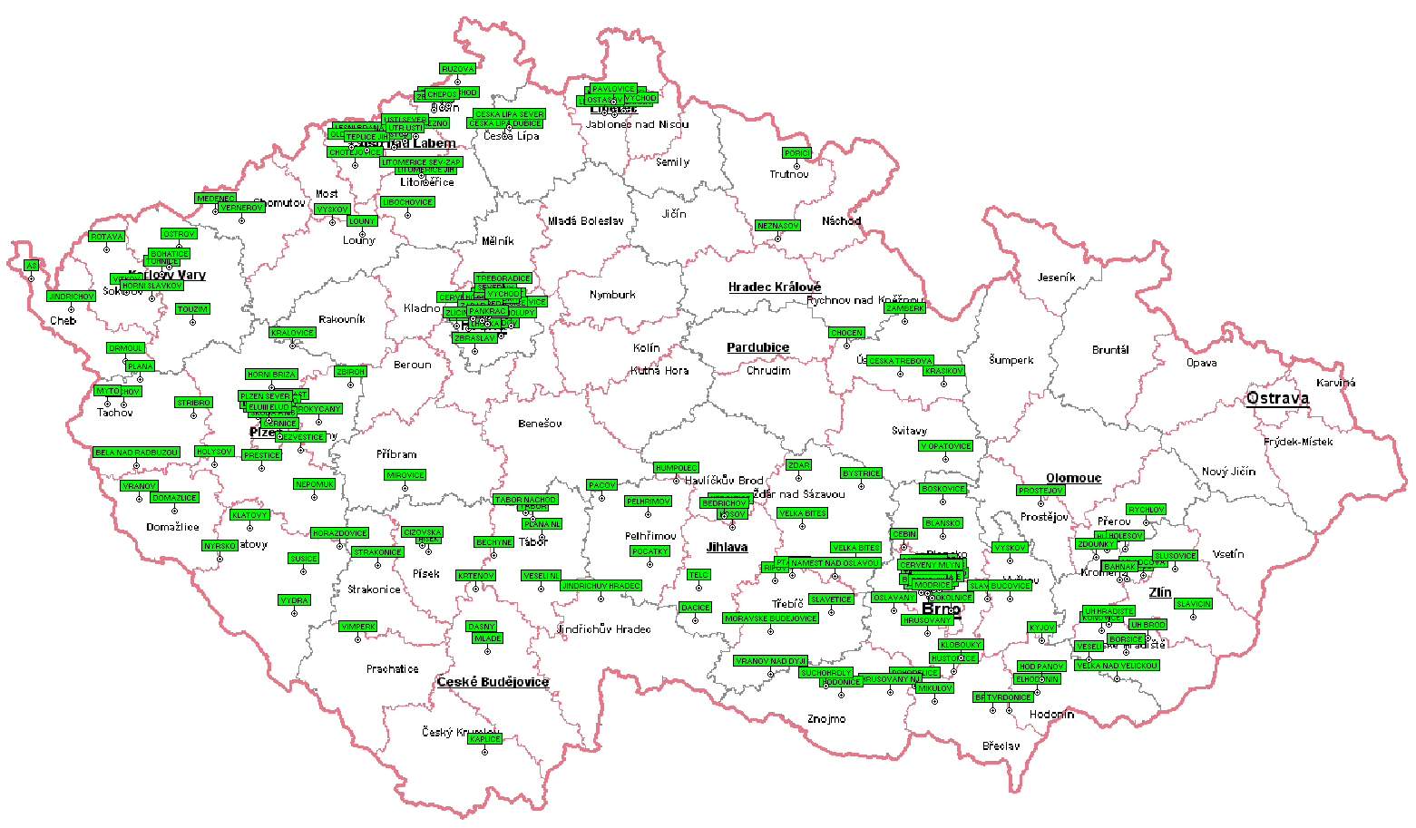 - Map of implemented measurements of synchrophasors in Czechia